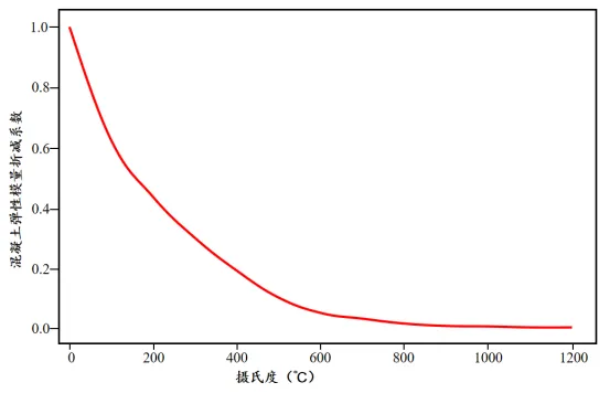 对于普通混凝土,其轴心抗压强度折减系数、弹性模量折减系数与温度的关系如下: