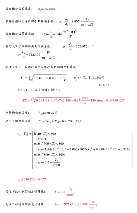 耐火钢,在高温下其屈服强度折减系数计算公式如下: