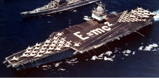 1964年8月,世界上第一艘核动力航母下水航行时,水手们站在甲板上,用队列摆出了物理学史上最伟大的公式之一“质能守恒公式E=mc2”,以致敬物理学家对人类进步的卓越贡献。