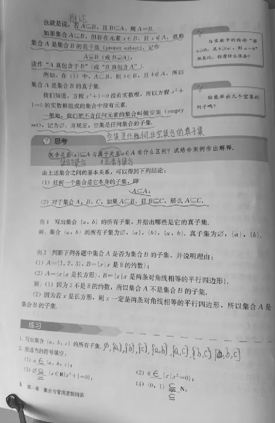 1.在表示集合之间的基本关系时,可以更加严谨些,例如能用“真包含于”的就不写“包含于”,这样通过答案就可以看出对于子集和真子集两个概念理解的程度;