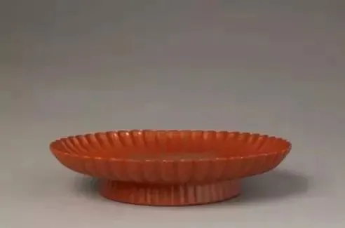 仿朱漆菊瓣式盘,清乾隆,高3.4cm,口径16.8cm,足径9.9cm。