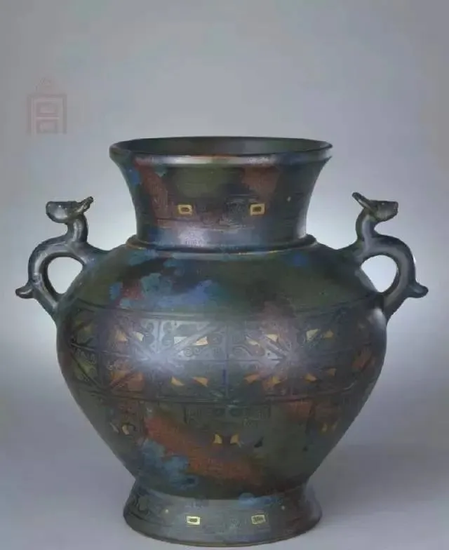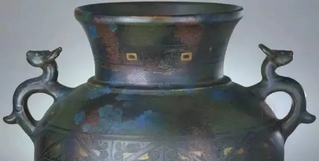 乾隆朝的瓷器生产盛极一时,在瓷器的制作上又突出发展了特种工艺,即仿漆器、仿竹木器、仿古铜器及仿各种水果、海螺等象生瓷。仿品不仅形似,且釉色、质感也与实物相差无几。这种制瓷工艺的创新得力于当时的督陶官唐英。此尊以沉着无光的色釉为底,在暗绿底色中闪烁着黄色斑点,又有铁锈色斑和青铜器上特有的纹饰,充分显现出古朴典雅的特色。