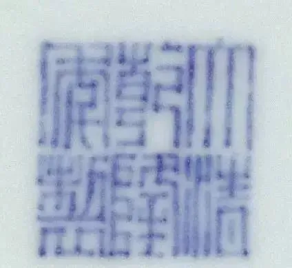 洗圆形,敞口,直壁,口沿下及近足处各有一周凸棱,圈足。通体施天青色仿宋代汝窑釉。底有9个支钉痕,中心书青花“大清乾隆年制”三行六字篆书款。