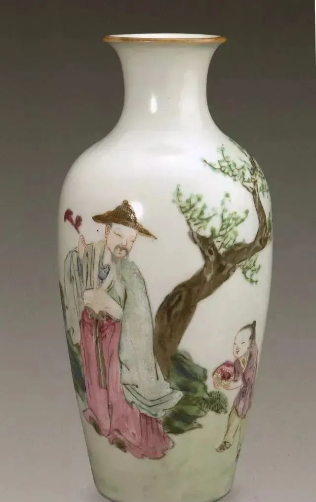 斗彩婴戏图玉壶春瓶,清乾隆,高21.5cm,口径6.9cm,足径7.4cm。