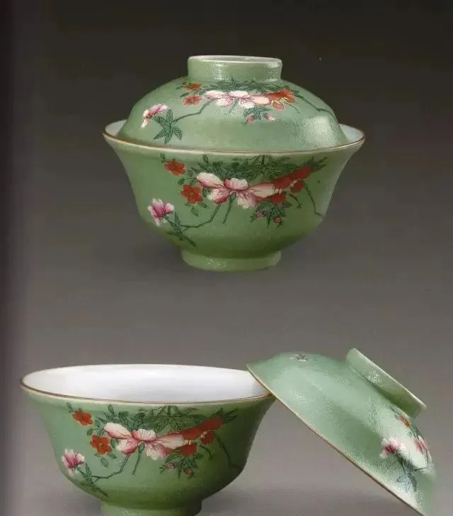 盖碗属于饮茶用具,饮茶是文人墨客的雅事。乾隆皇帝嗜茶,常作诗品茗,在许多陶瓷茶具上都留有乾隆帝的御题诗句。