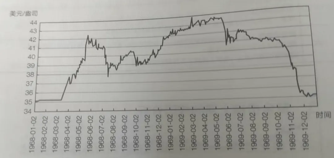 20世纪60年代末黄金价格走势(资料来源:Wind资讯)
