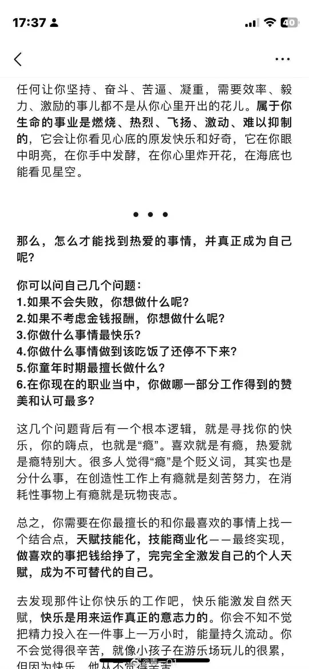 人生是要有主线的,有趣会玩有生活社交爱好个性这些都是生而为人的乐趣所在,也是“活人感”的重要标识。但是仅靠这些东西获得快乐的阈值会随着年龄增长慢慢升高,以前阿迪耐克能满足的现在要中产三件套,以前出门公交地铁现在要开车,欲壑难填,我们往往会陷入无法满足自我的怪圈,越拥有越空虚。问题在哪?这些东西只是人生辅料,难以真正“托得住”我们,不足以支撑一个人的全部生活。人的主要价值感来自于对人生主线的掌控,学生时代的学习学业,职场里的事业成就,这些“最讨厌的东西”恰恰是主要矛盾,因为这是最容易获得价值感的途径。到这里我才意识到马克思主义里,直接的物质资料生产活动(也就是工作)是一切的基础。人生也是如此,上层建筑的美妙几乎全都基于此。
