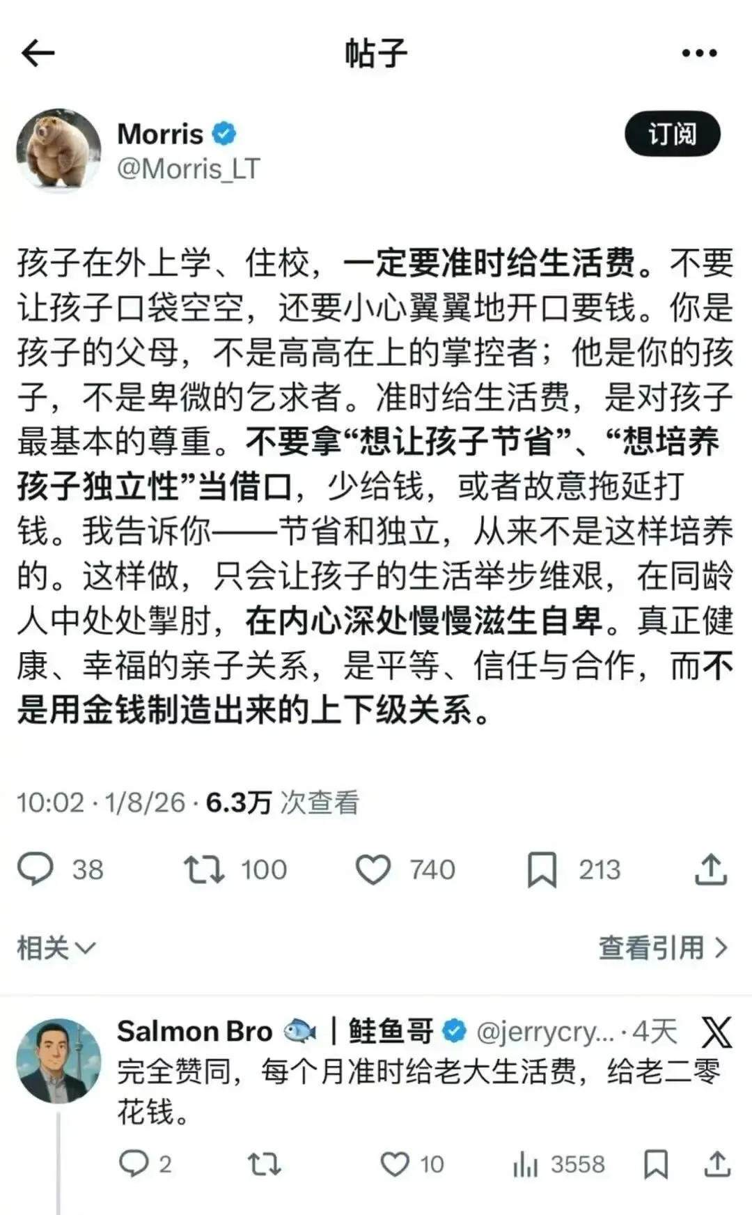 人还是要适当管束自己的自恋,对于他人的人生选择,无论如何都理解不了那就不要理解了,不能因为自己理解不了浑身难受就把这份难受转变成对他人生活正当性的质疑。主流群体的傲慢也在于老觉得其他人需要自己的理解、批准和恩赐才有资格活下去,凭啥呢。