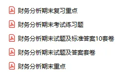今天分享的资料是「财务分析」电子版+学习笔记+知识点总结+期末考试重点+复习资料+习题集及答案+名词解释+历年真题试卷及答案+题库及答案+复习重点+思考题及参考答案+公式总结+考试重点基础题+知识总结+高清PDF可打印+免费分享!