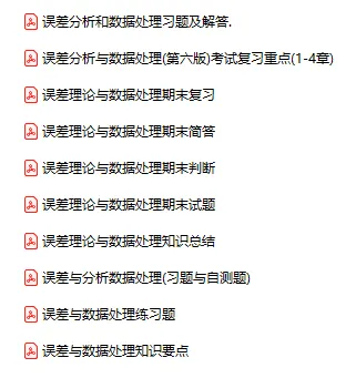 今天分享的资料是「误差分析和数据处理」电子版+学习笔记+知识点总结+期末考试重点+复习资料+习题集及答案+名词解释+历年真题试卷及答案+题库及答案+复习重点+思考题及参考答案+公式总结+考试重点基础题+知识总结+高清PDF可打印+免费分享!