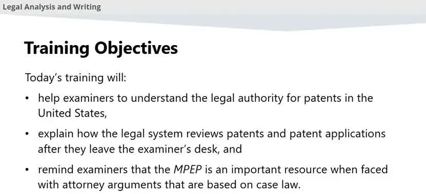 USPTO培训资料《Legal Analysis and Writing》的链接为:https://www.uspto.gov/video/cbt/rspnd-lglargmnts/index.htm。