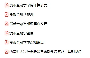 今天分享的资料是「货币金融」电子版+学习笔记+知识点总结+期末考试重点+复习资料+习题集及答案+名词解释+历年真题试卷及答案+题库及答案+复习重点+思考题及参考答案+公式总结+考试重点基础题+知识总结+高清PDF可打印+免费分享!