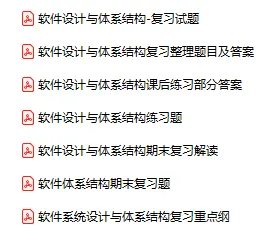 今天分享的资料是「软件设计与体系结构」电子版+学习笔记+知识点总结+期末考试重点+复习资料+习题集及答案+名词解释+历年真题试卷及答案+题库及答案+复习重点+思考题及参考答案+公式总结+考试重点基础题+知识总结+高清PDF可打印+免费分享!