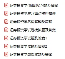 今天分享的资料是「证券投资学」电子版+学习笔记+知识点总结+期末考试重点+复习资料+习题集及答案+名词解释+历年真题试卷及答案+题库及答案+复习重点+思考题及参考答案+公式总结+考试重点基础题+知识总结+高清PDF可打印+免费分享!