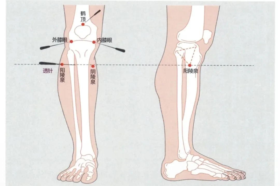 ①通常选用3寸长的毫针,以确保能够从阳陵泉透刺至阴陵泉。