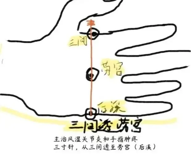 3.配穴:配内关、太渊、阴陵泉、阳陵泉等穴。严重者可加液门透中渚、曲池透少海、外关透内关等。