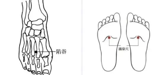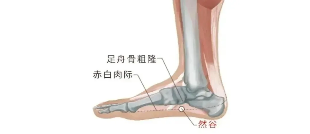 ①患者盘坐,足心相对,由然谷以15°角向涌泉透刺。