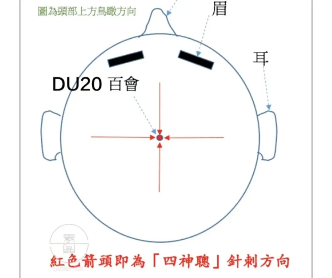 ②针尖方向为倒着向上刺,顺着经络走向,属于补法;若逆经络走向则为泻法。