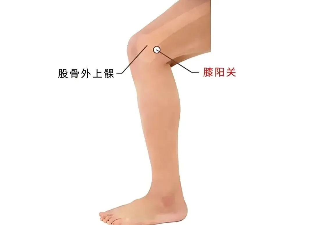 ①阳陵泉:位于小腿外侧,腓骨小头前下方凹陷中。可先找到膝盖外侧的腓骨小头,其前下方的凹陷处即为阳陵泉穴。