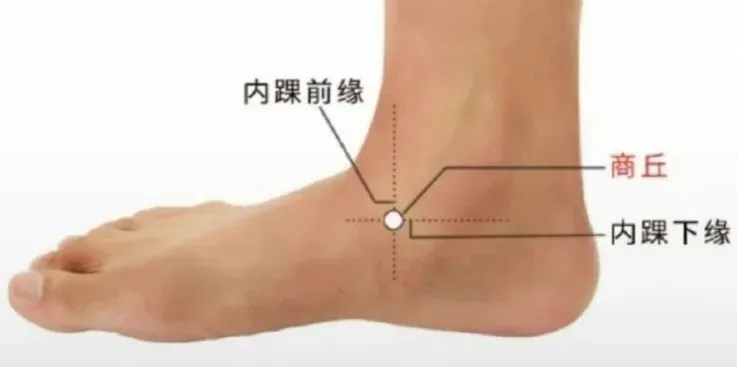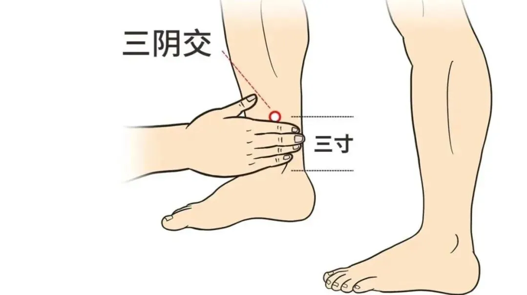 ②三阴交穴:位于小腿内侧,内踝尖上3寸,胫骨内侧缘后方。