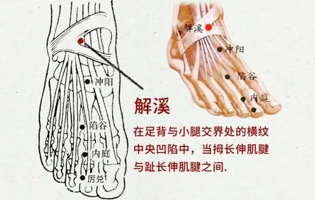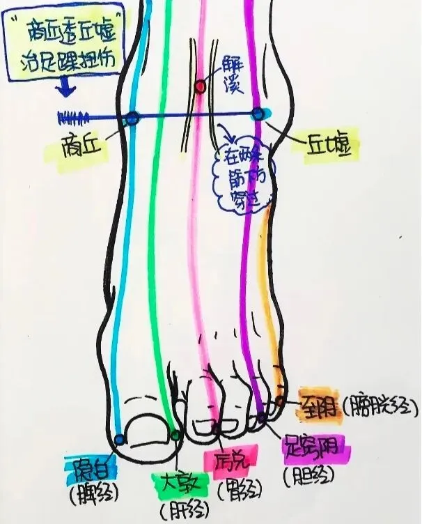 8.中封透解溪、丘墟: