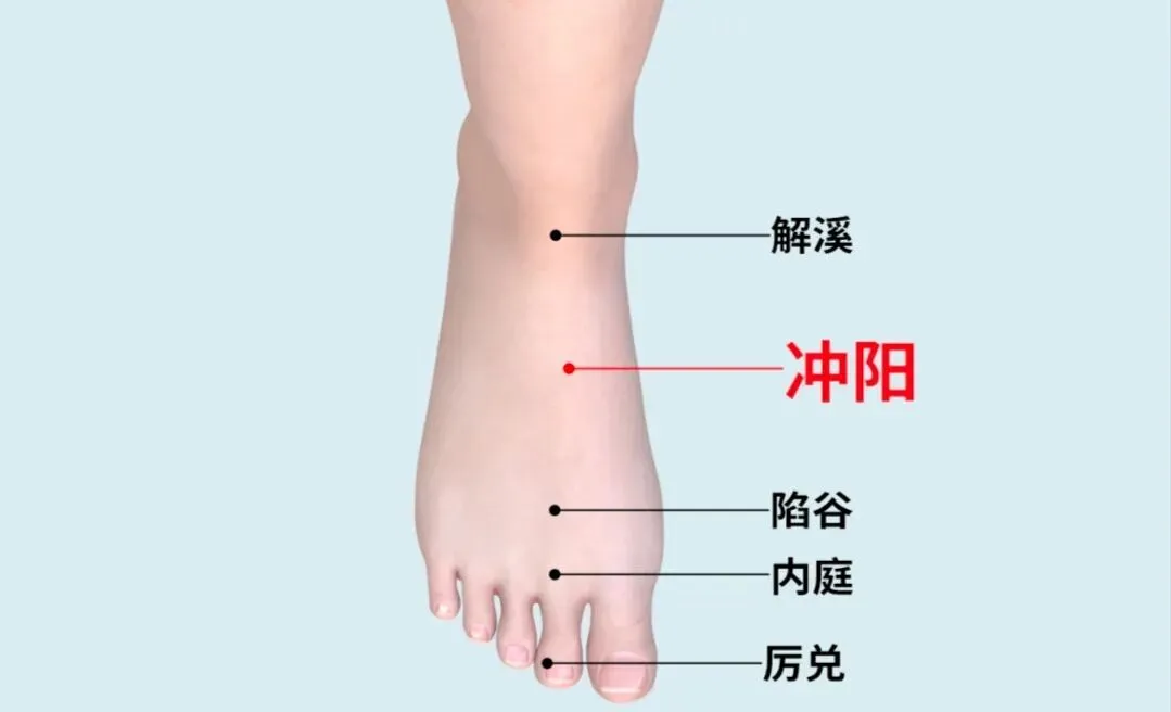 ①患者足底平放,由冲阳穴以15°角向涌泉穴透刺,应注意避开足背动脉。