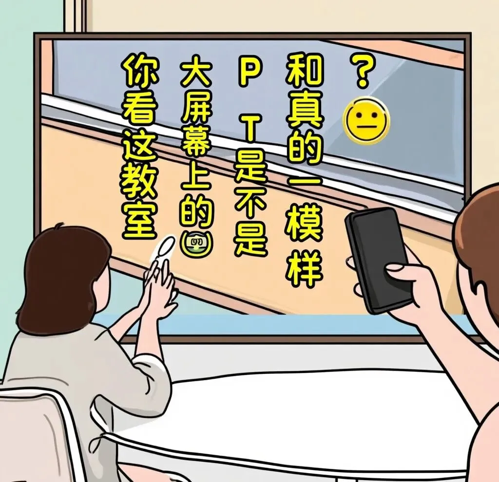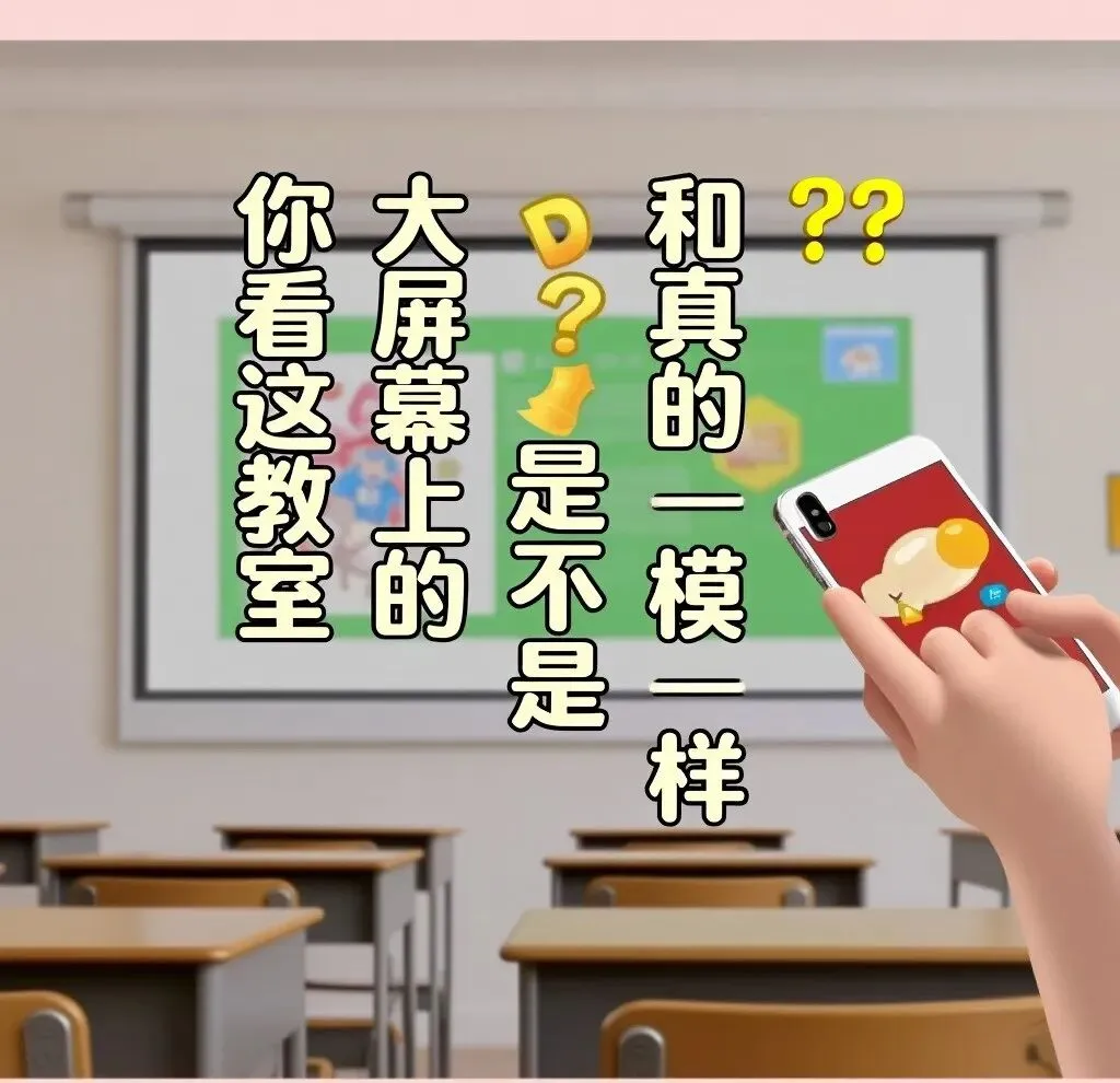 “你看这教室大屏幕上的PPT,是不是和真的一模一样?”