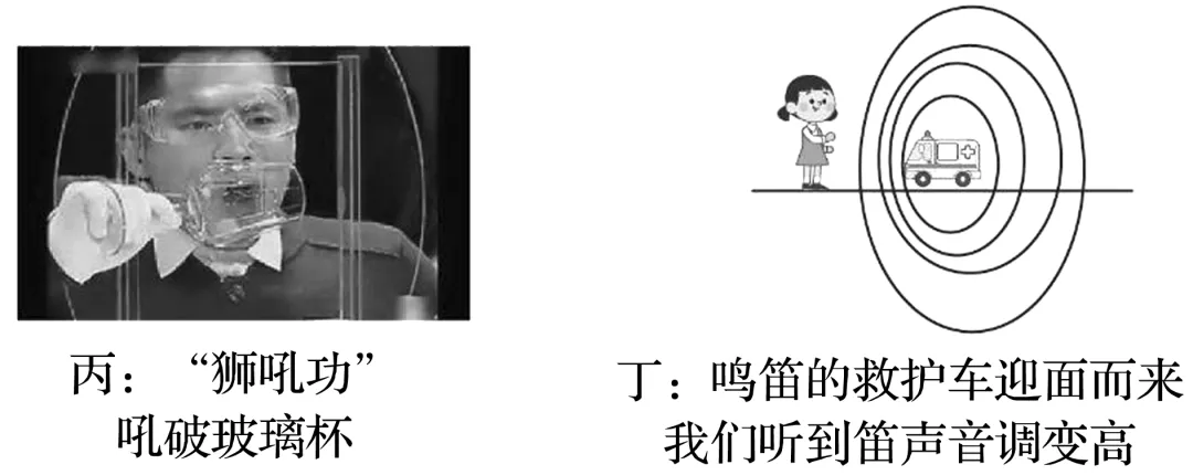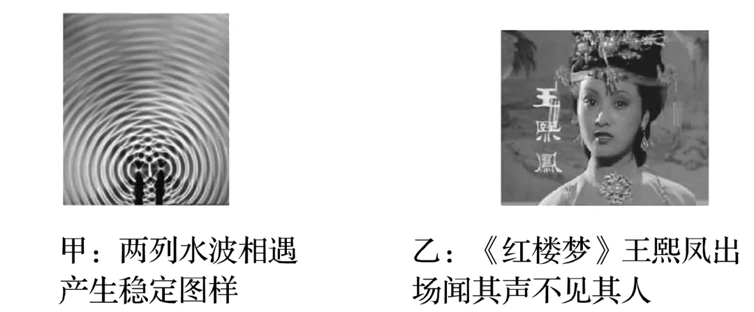 解析 两列水波相遇产生稳定的图样属于波的干涉现象;《红楼梦》中王熙凤出场闻其声不见其人属于波的衍射现象;“狮吼功”吼破玻璃杯属于共振现象;鸣笛的救护车迎面而来,我们听到笛声音调变高属于多普勒效应。故选A。
