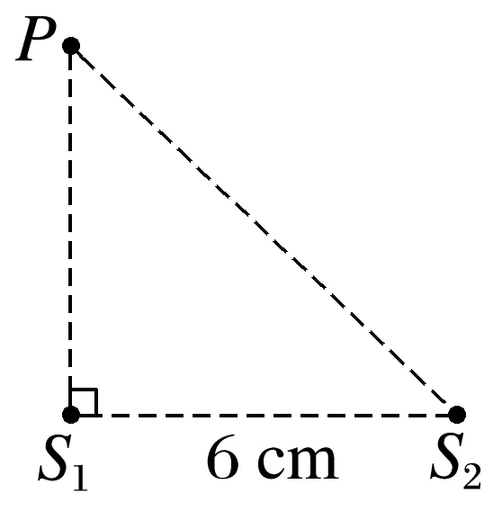 (QS2)2=(QS1)2+(S1S2)2,所以S1P连线上(不包含S1点)只有1个振动加强点,在距离S1为2.5 cm的位置,故B错误。