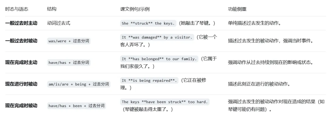 本课的核心语法点是现在完成时的被动语态,这是将“时态”(现在完成)与“语态”(被动)结合的高级语法点。