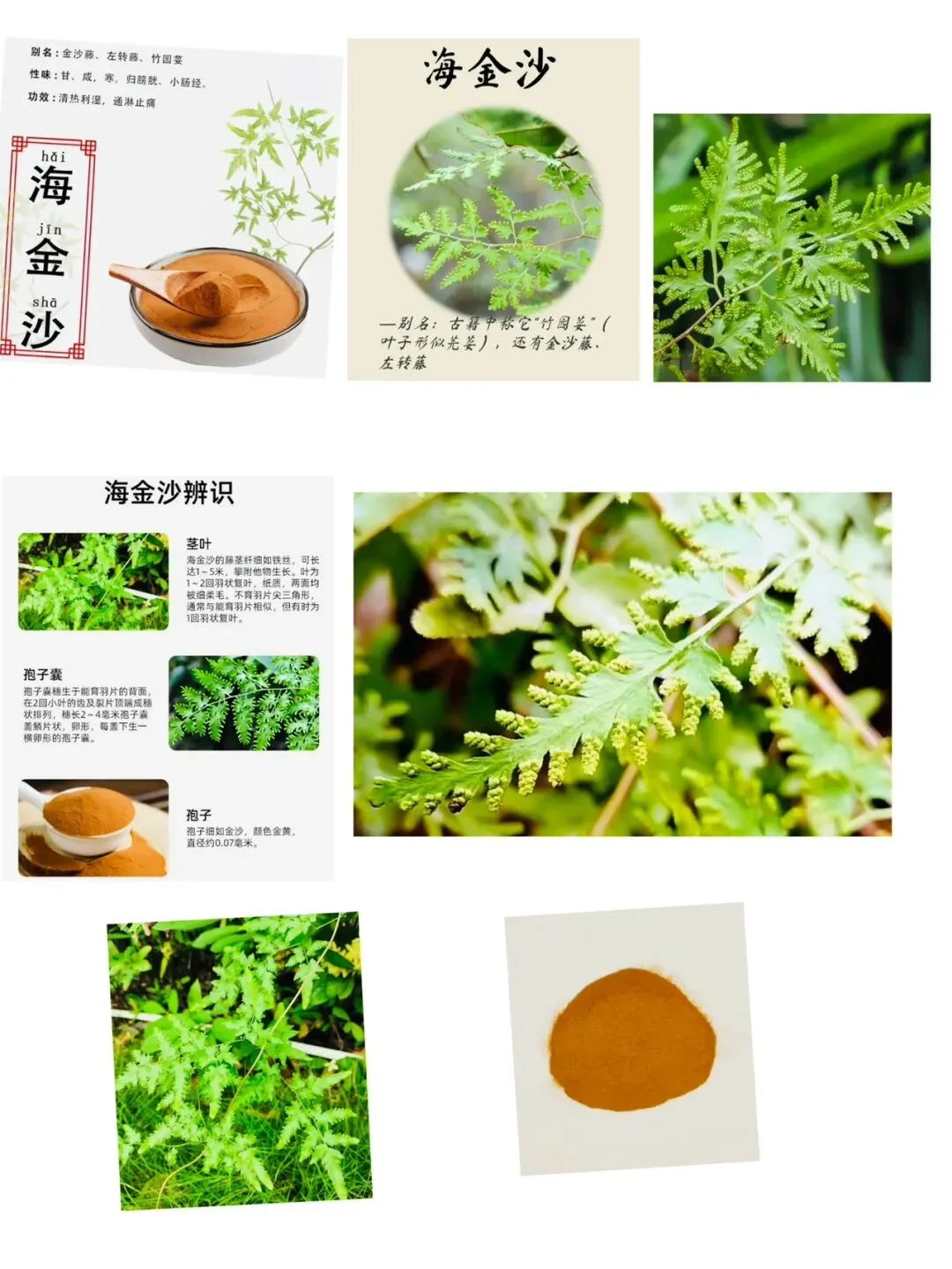 1)来源与性味:海金沙科植物的干燥孢子。性味:甘、咸,寒。功能:清利湿热,通淋止痛。