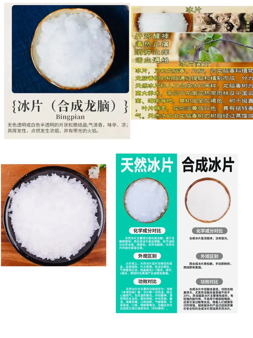 (5)联想记忆:为冰片中的天然上品,功效相同,品质更优。