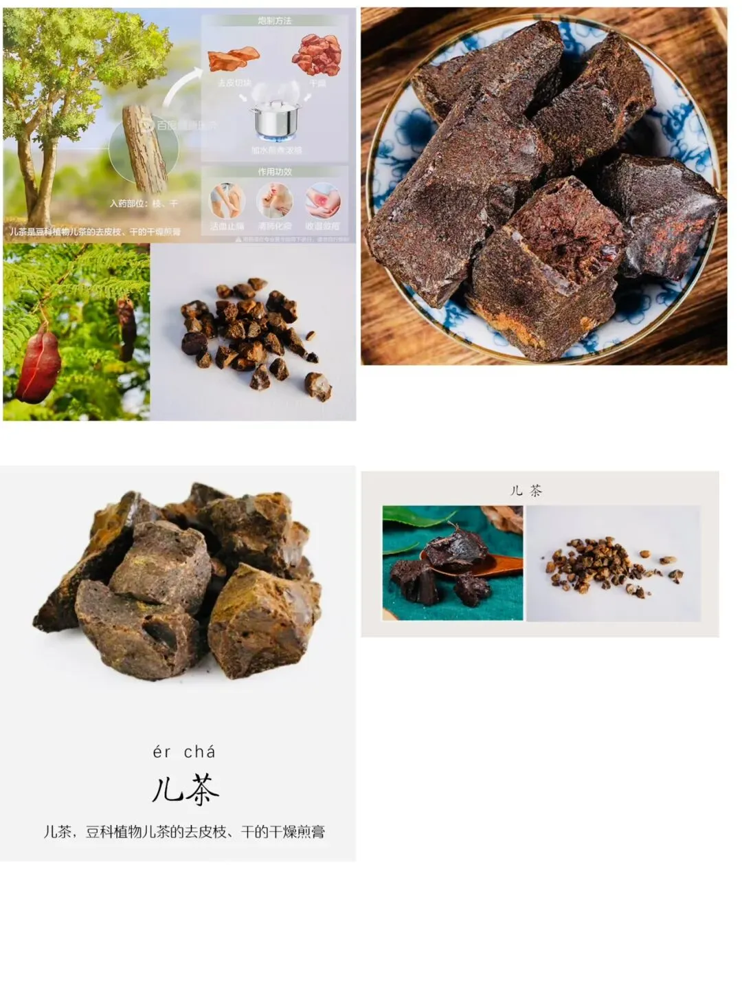 1)来源与性味:豆科植物儿茶的去皮枝、干的干燥煎膏。性味:苦、涩,微寒。功能:活血止痛,止血生肌,收湿敛疮。