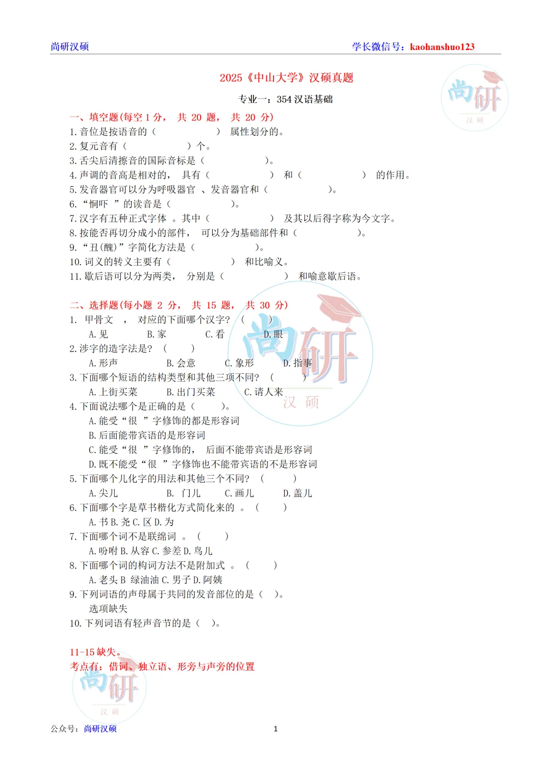 专业一:354汉语基础