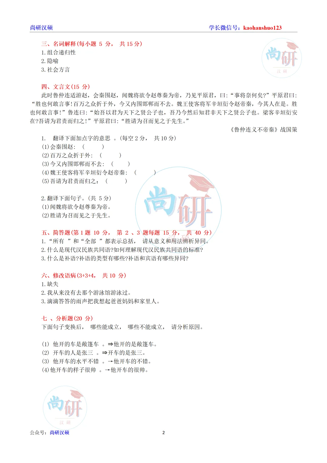 2027考研《汉硕真题》分享专栏(1):北师大汉硕真题