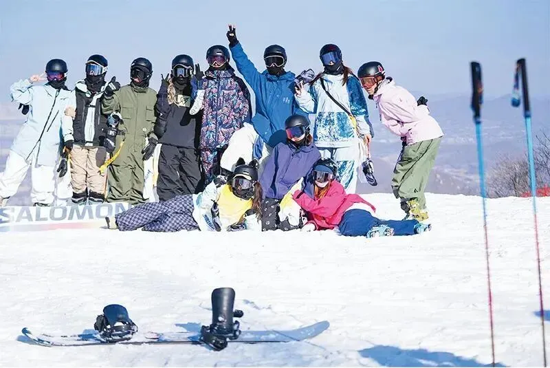 图为2025年11月22日,滑雪爱好者在吉林省吉林市中旅松花湖度假区合影留念。 新华社记者 颜麟蕴/摄