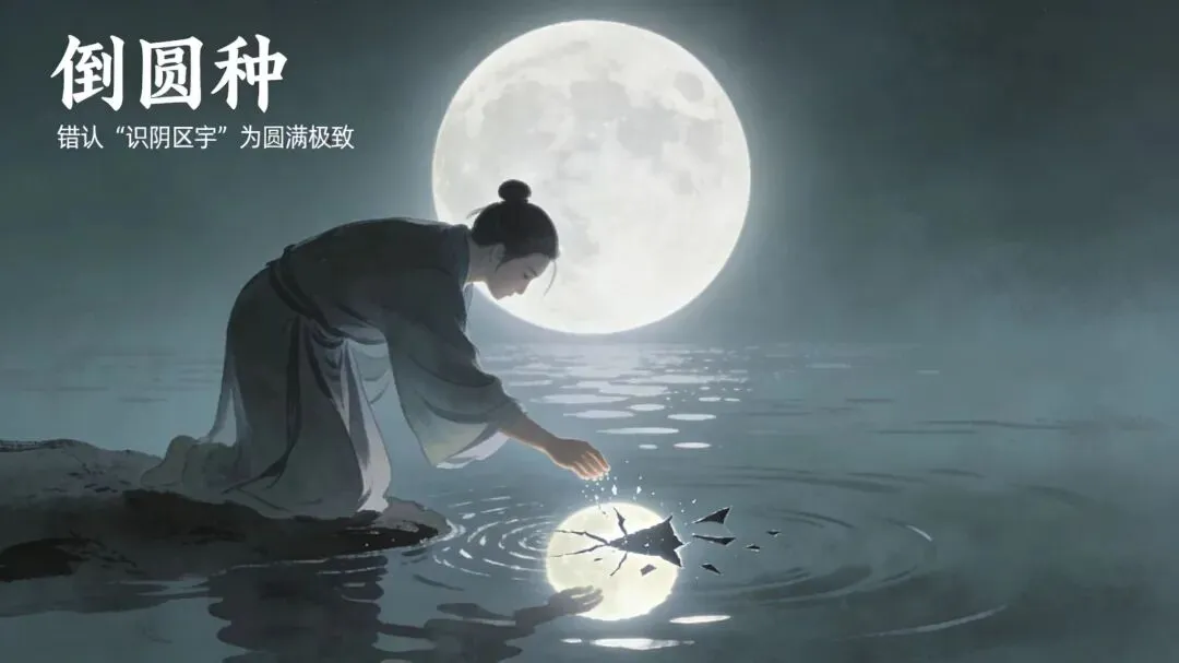 就像以水中月影为目标,追逐不休,本欲趋向圆通,却因错认“识阴区宇”为圆满极致,反成颠倒的“倒圆种”。如《圆觉经》云:“以轮回心生轮回见,入于如来大寂灭海,终不能至。”