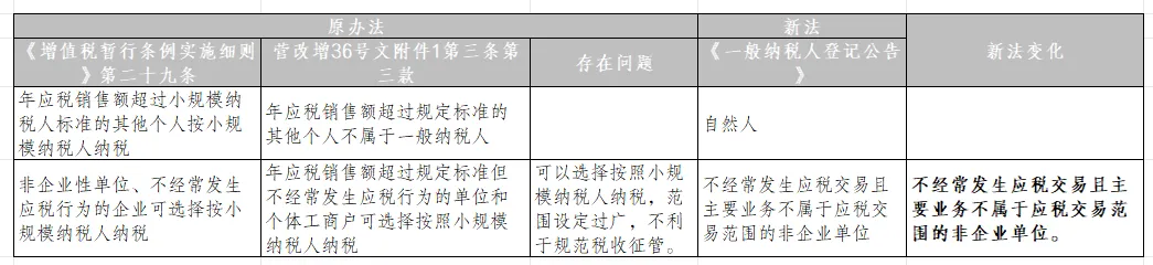 一般纳税人的生效时间由“为纳税人办理登记的当月1日或者次月1日”变为“在超过标准当期1日”。
