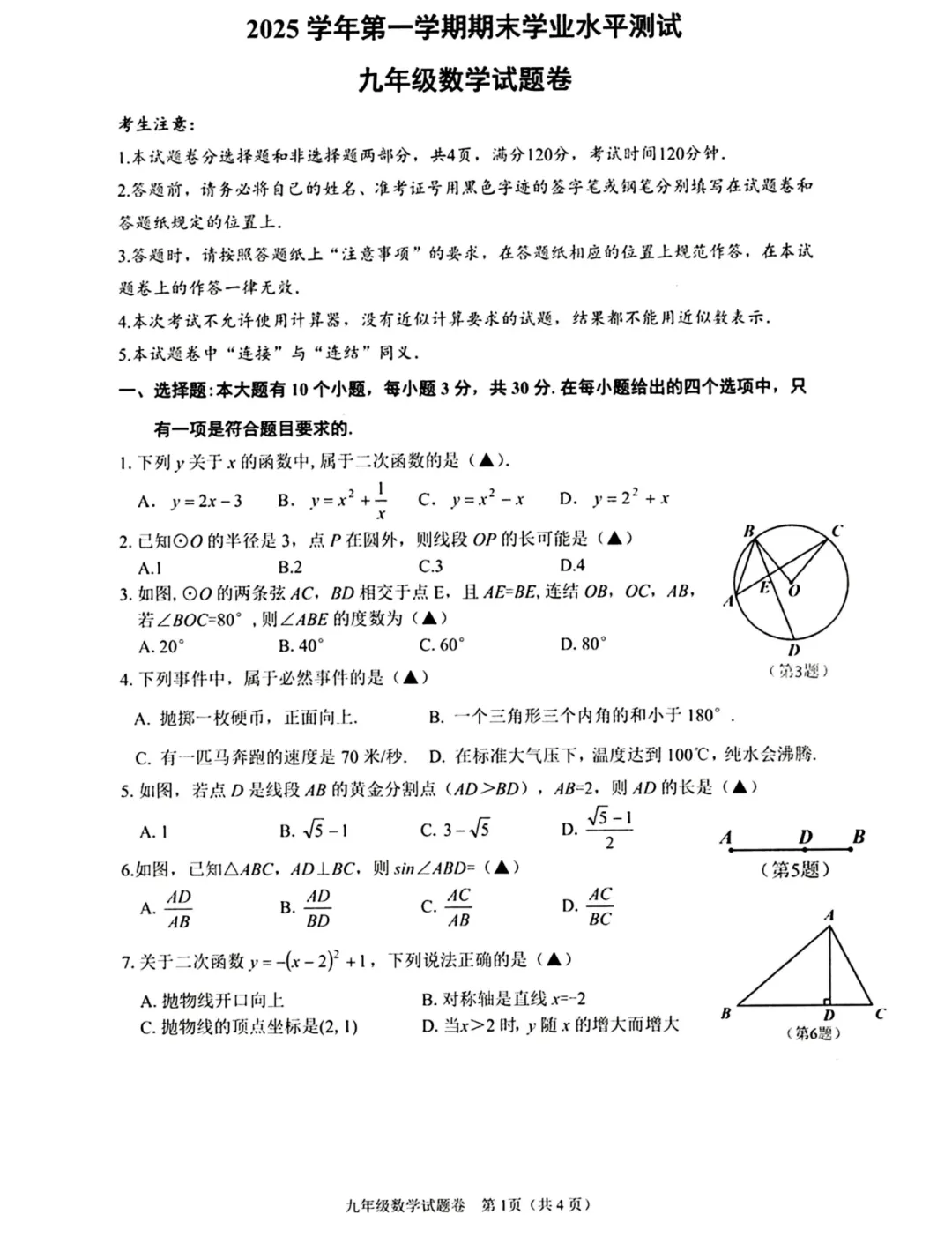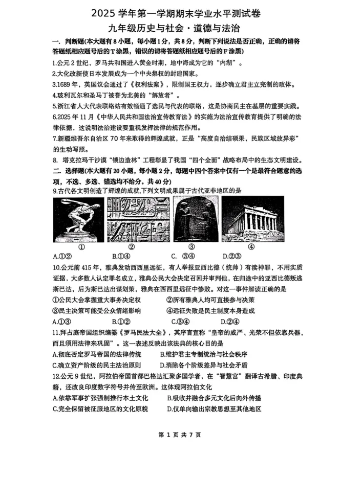 学习资料|2026年1月余杭临平九上期末卷(内含下载链接)