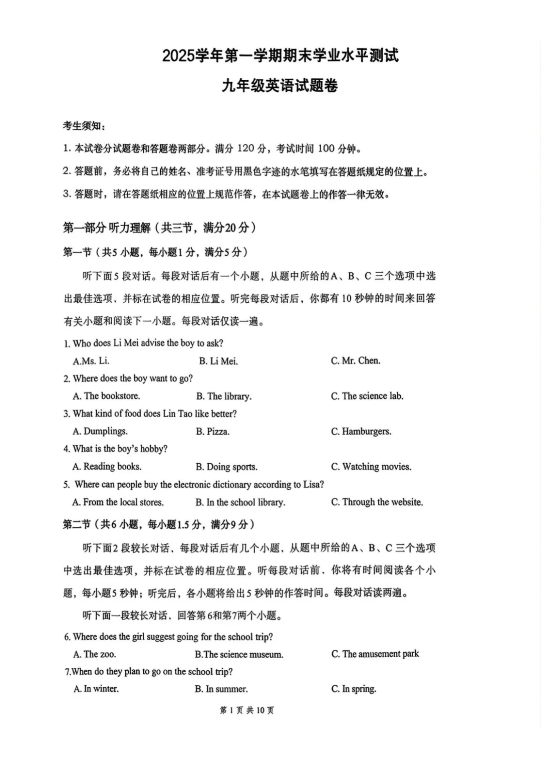 >学习资料|2026年1月余杭临平九上期末卷(内含下载链接)