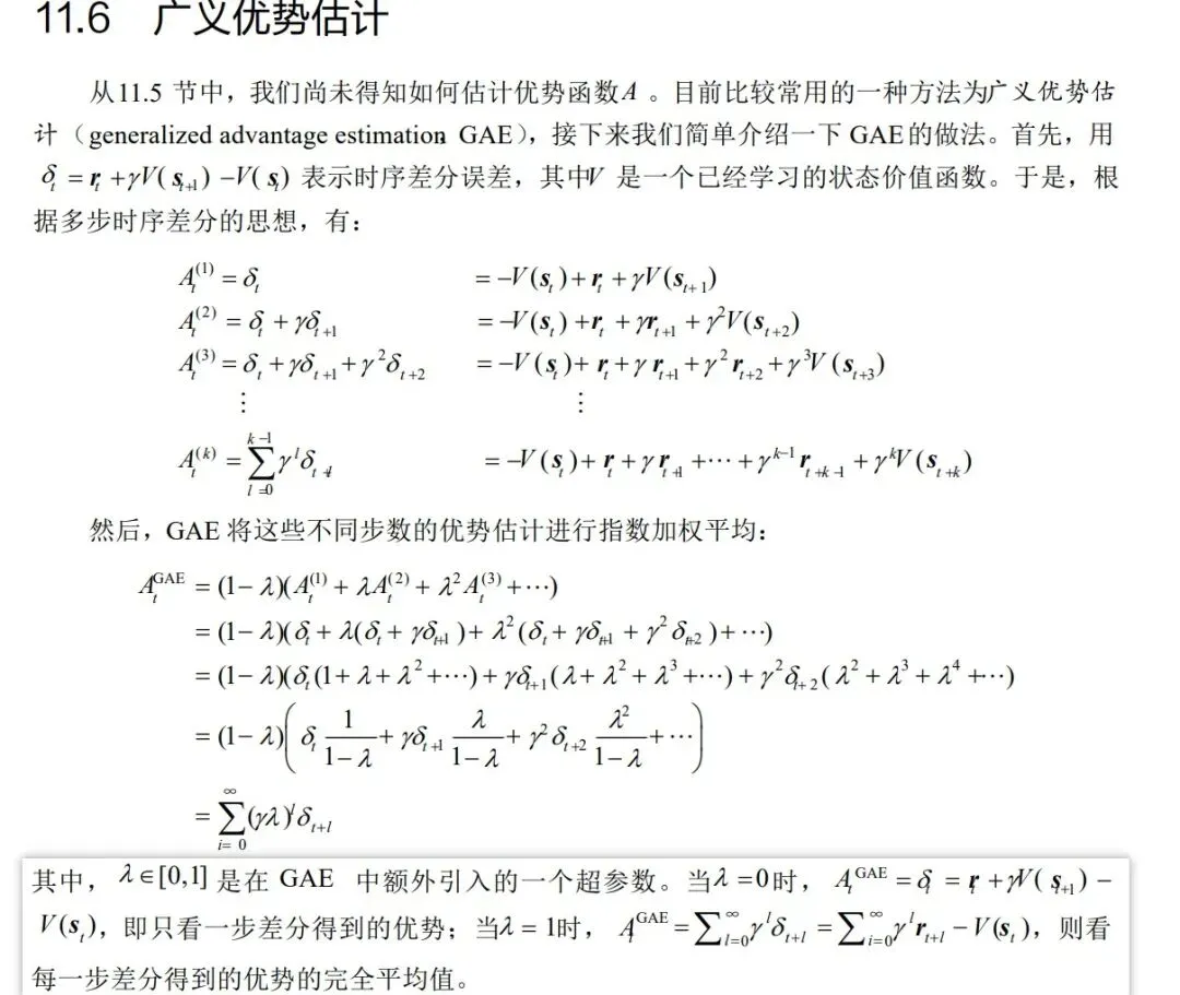 根据参考材料1第11.6节,优势函数计算方法如下。