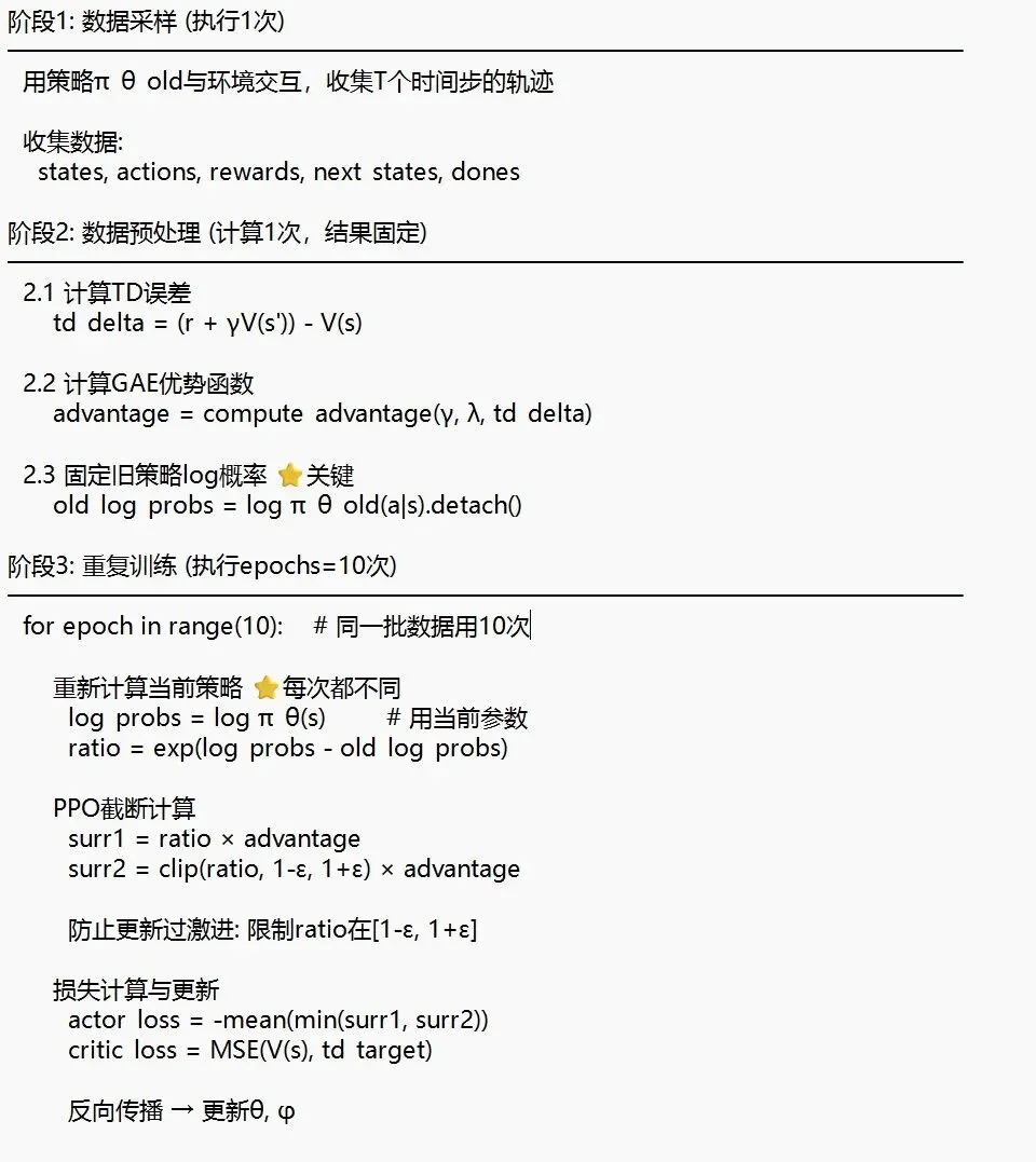 PPO算法限制了新旧策略的概率分布要在一定区间(PPO算法有两种,此处学习常用的PPO-裁剪算法)。