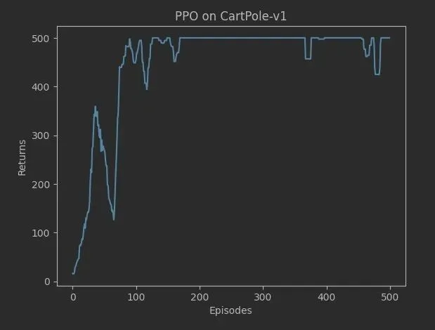 参考资料1第12.4节以车杆环境为例,给出了使用PPO-裁剪算法求解车杆环境的策略。
