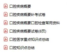 今天分享的资料是「口腔疾病概要」电子版+学习笔记+知识点总结+期末考试重点+复习资料+习题集及答案+名词解释+历年真题试卷及答案+题库及答案+复习重点+思考题及参考答案+公式总结+考试重点基础题+知识总结+高清PDF可打印+免费分享!