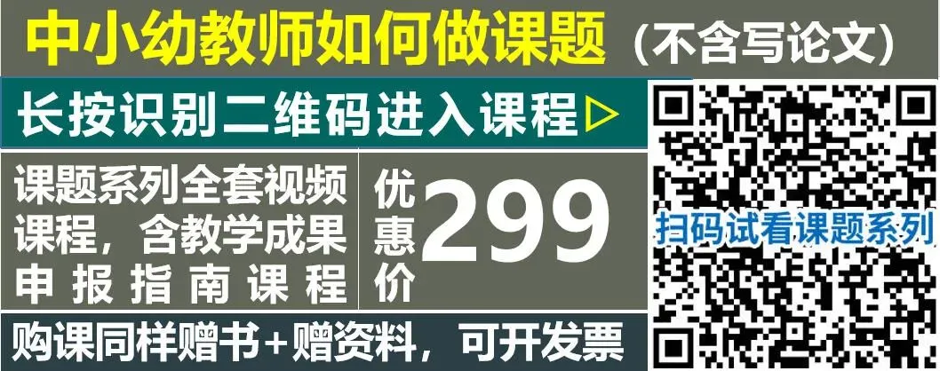 《中小幼教师如何做课题写论文》系列视频课程是专为中小学幼儿园一线教师开发的教育科研通识课程,不分学段学科,适合幼儿园、小学、初中、高中各学科教师学习,特别适合一线教师零基础入门者学习,目前已有超2000名中小学幼儿园一线教师在学,全五星好评,也非常适合作为学校或工作室作为教科研培训线上课程。