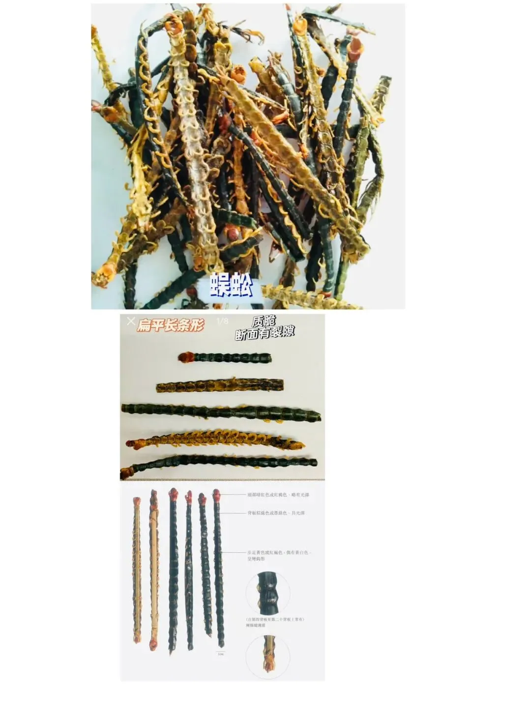 1)来源:蜈蚣科动物少棘巨蜈蚣的干燥体。