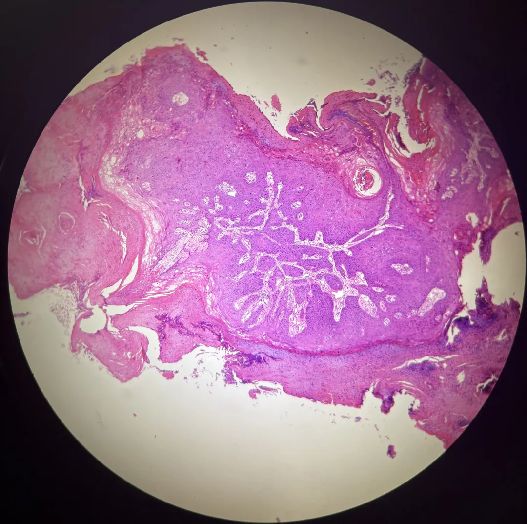 肿瘤突破表皮基底膜,侵入真皮层,具备局部侵袭、区域淋巴结转移潜能,为临床主要恶性类型。