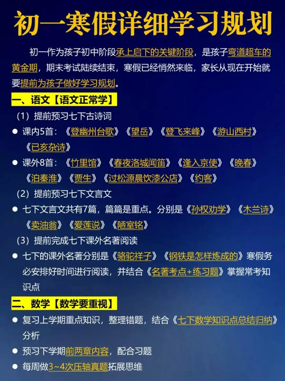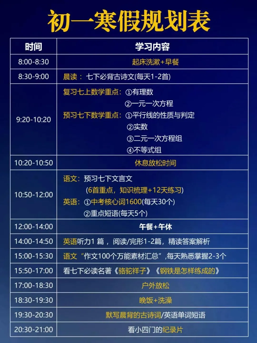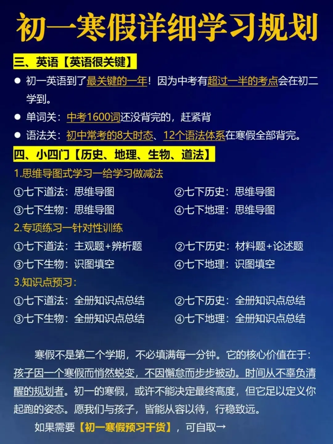 >【七年级寒假预习】2026七年级寒假学习安排+日常规划表,附相关,电子版可打印!