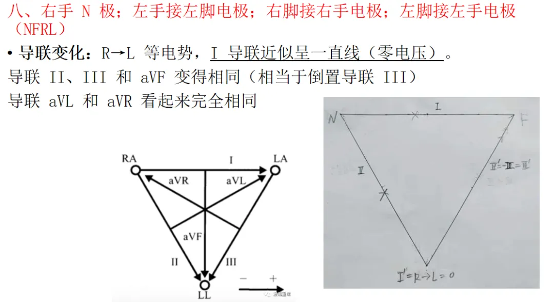 图3.我同事的课件,直接截图分享了。也就是上下肢的导联完全接反了:右手右脚接反,左手左脚接反。这个要结合爱氏三角细细去分析了。