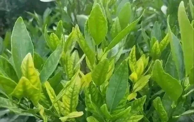 柑橘缺锌症状:主要表现在新梢的上、中部叶片上,表现为叶脉间失绿,新生叶片狭小簇生,新抽生的枝条细弱,茎节间缩短。 对于果实来说,表现为小果、僵果,果肉出现不同程度的木栓化症状,同时味道变淡,甚至无味。
